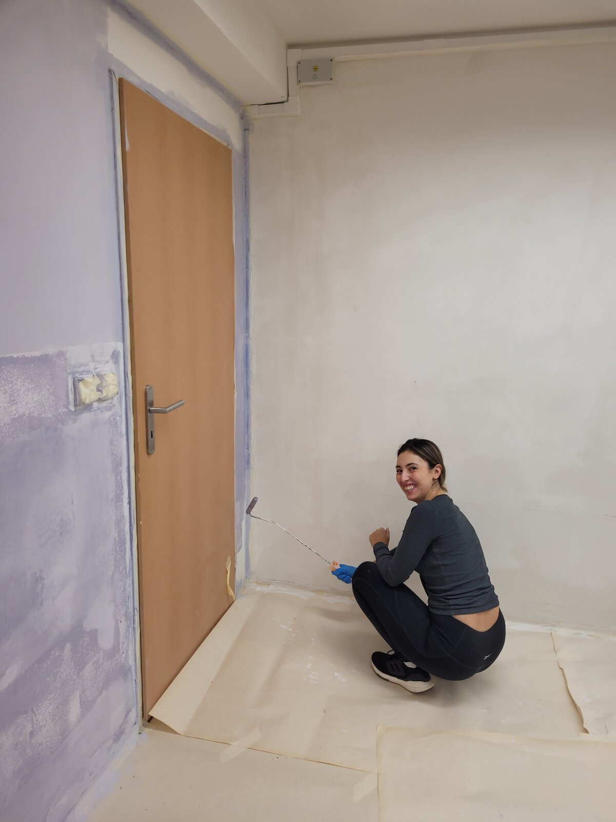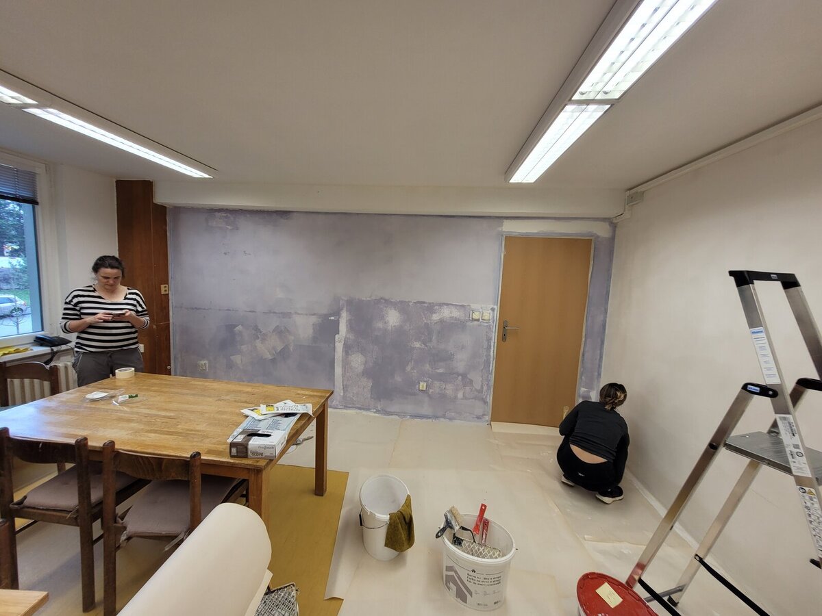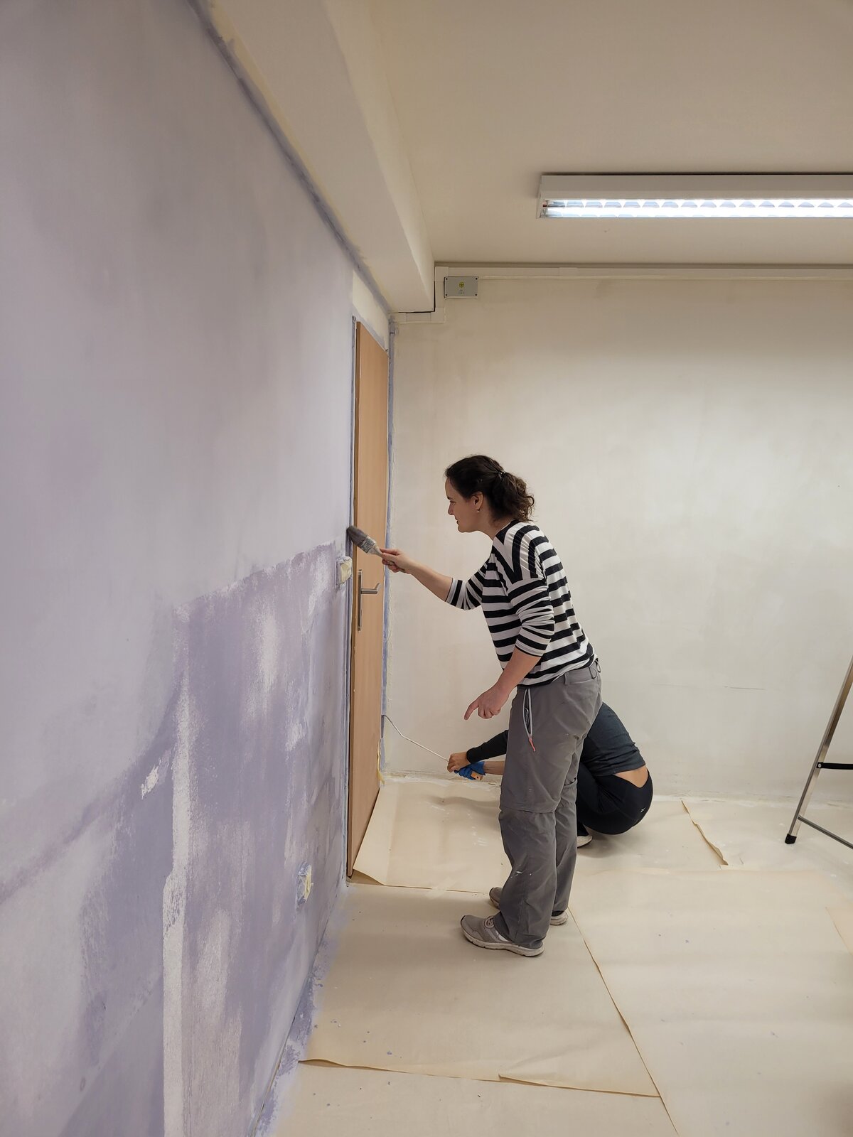 Během jediného dne se jim podařilo vymalovat tři stěny v prostorách, které dlouhodobě čekaly na obnovu. V mezičase mezi schnutím stěn neváhaly a vypomohly také s důkladným úklidem cvičné kuchyně pro klienty.