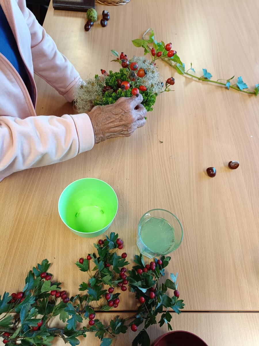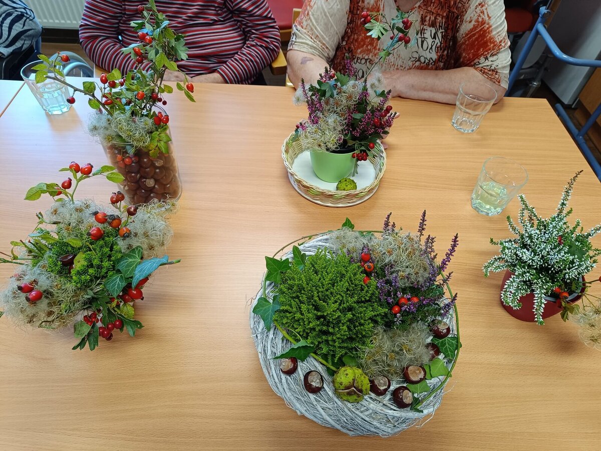 Zářijové tvoření jsme završili výrobou podzimních dekorací z přírodnin. Klienti si mohli osahat kaštany, větvičky, šípky, hloh i suché květy a při tom vzpomínali na dětství a podzimní procházky. Vzniklo několik krásných dekorací, které nyní zdobí společné prostory Domova. Aktivita rozvíjela smyslové vnímání, kreativitu i vzájemnou spolupráci.